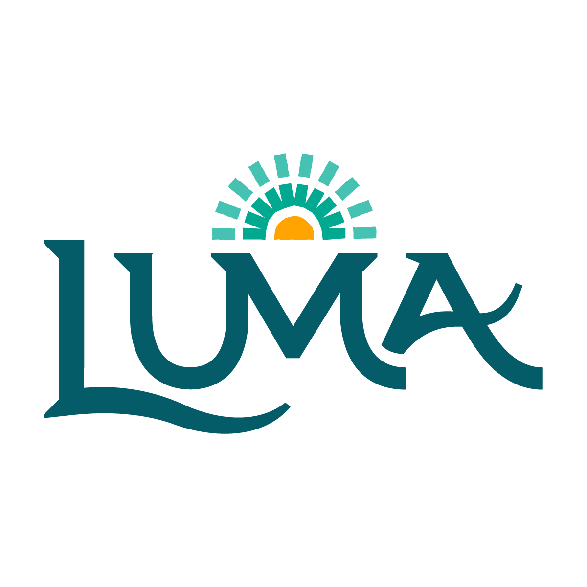 Pictured: Luma's first logo. The waves in the text represent the beaches of the Mexican Caribbean. The rays of the sun are sugarcanes. The color of the text is the color of cenote water.